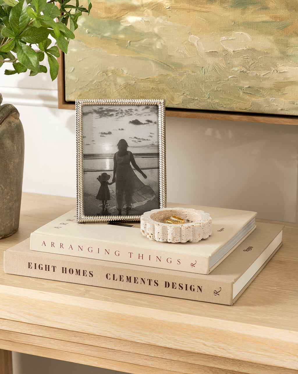 Classic and elegant, the Calhoun Metal Frame brings sophistication to your photo display with its nickel finish. Featuring turning detail, the frame’s refined aesthetic adds beautiful detail to your space.